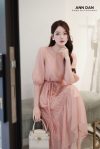 Đầm lụa tơ bọt hồng mang vẻ đẹp nhẹ nhàng, nữ tính với phom dáng suông mềm mại và phần chân váy nhún tầng bay bổng. Chất vải lụa tơ xước nhẹ, thoáng mát cùng độ rủ tự nhiên giúp tổng thể thanh thoát và duyên dáng khi di chuyển. Khi kết hợp thêm đai eo, chiếc đầm càng tôn dáng gọn gàng và tạo điểm nhấn tinh tế. Mẫu đầm rất dễ ứng dụng, nàng có thể diện đi dạo phố, đi chơi hay những chuyến du lịch biển mà vẫn giữ được nét dịu dàng và thanh lịch.