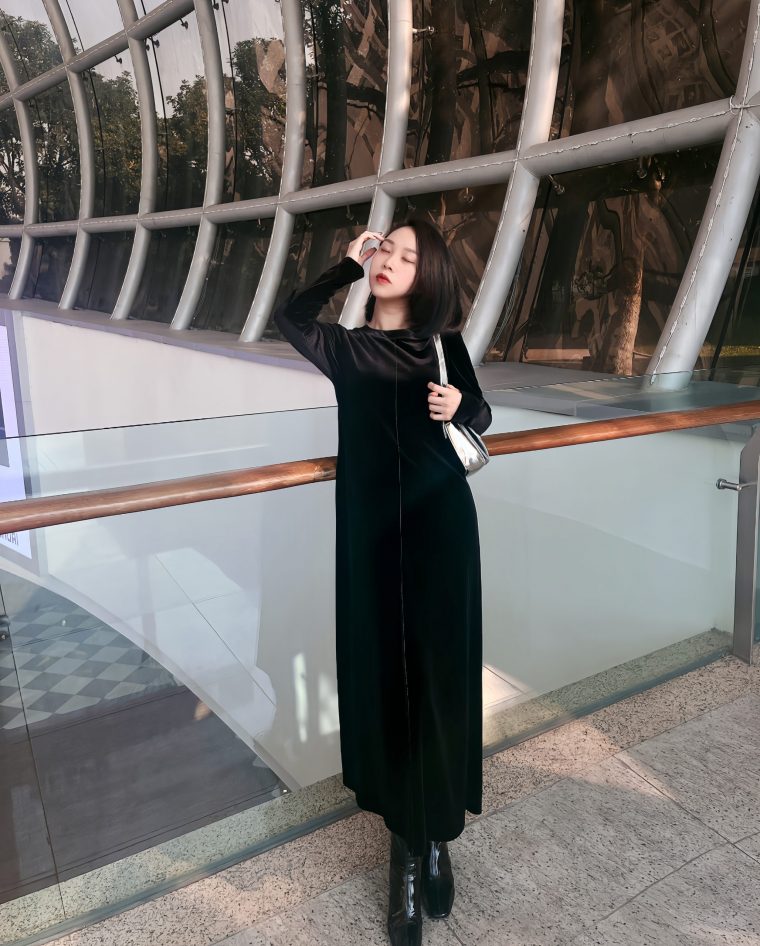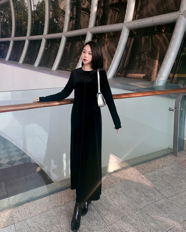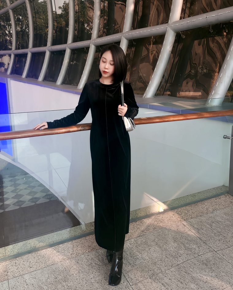 Đầm nhung trơn – đen